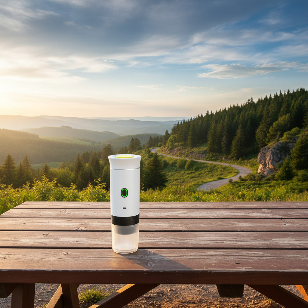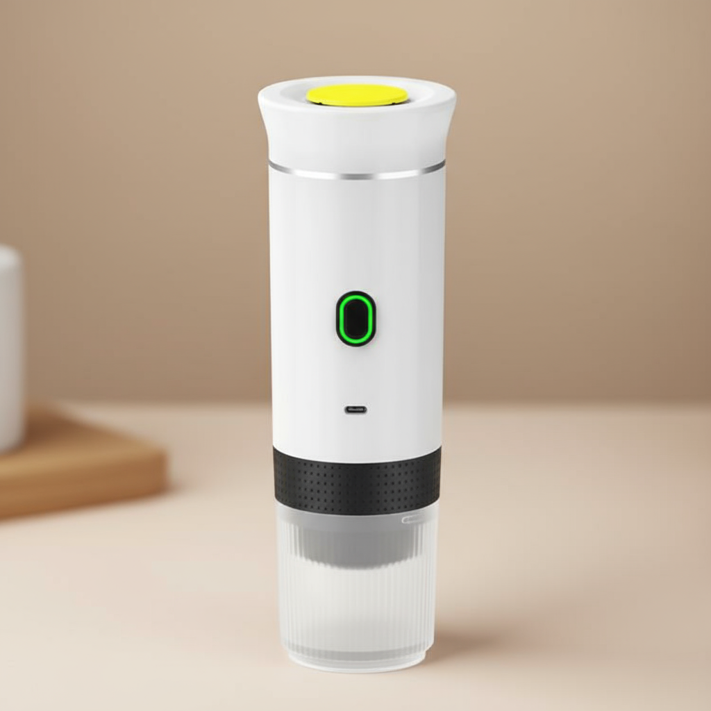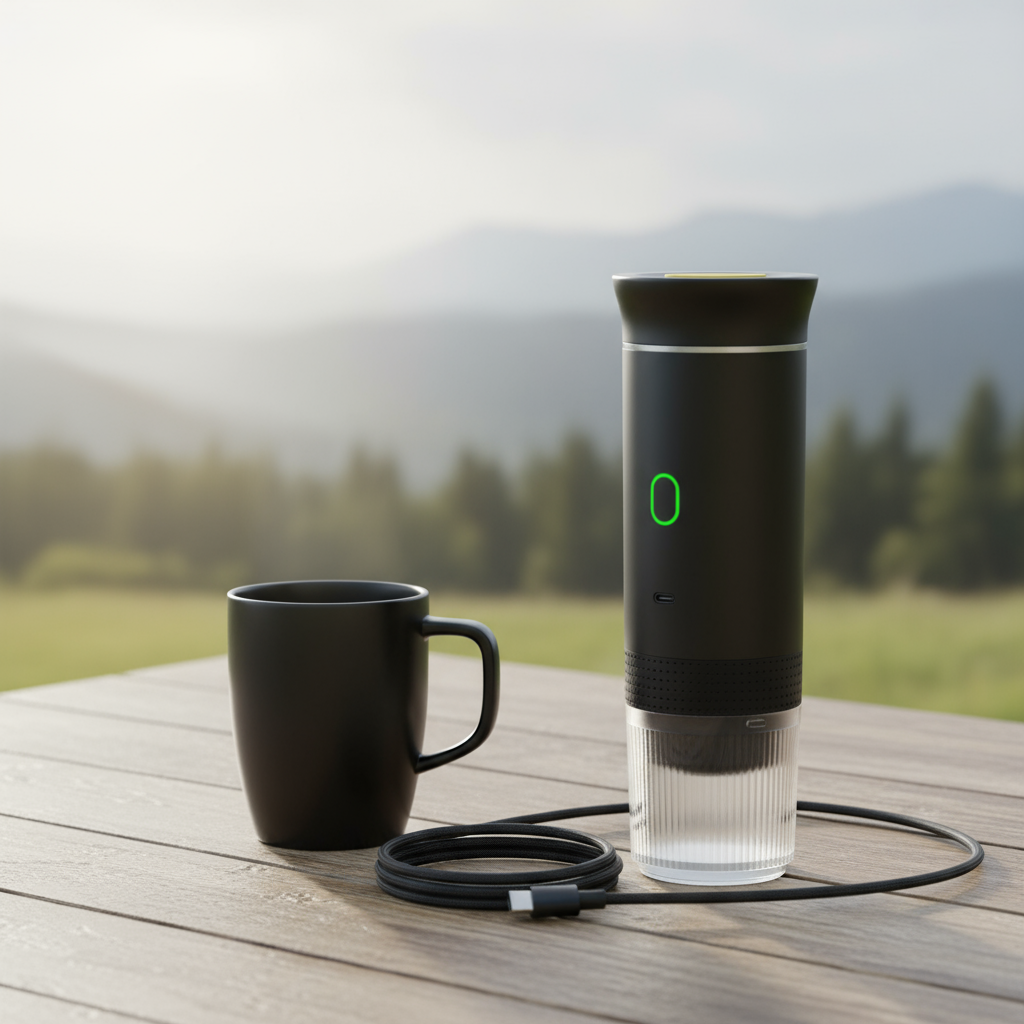 "Cafetera portátil – café en minutos donde quieras"